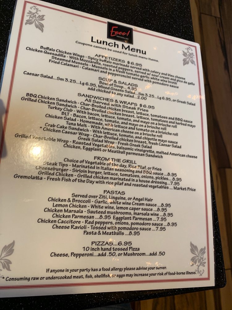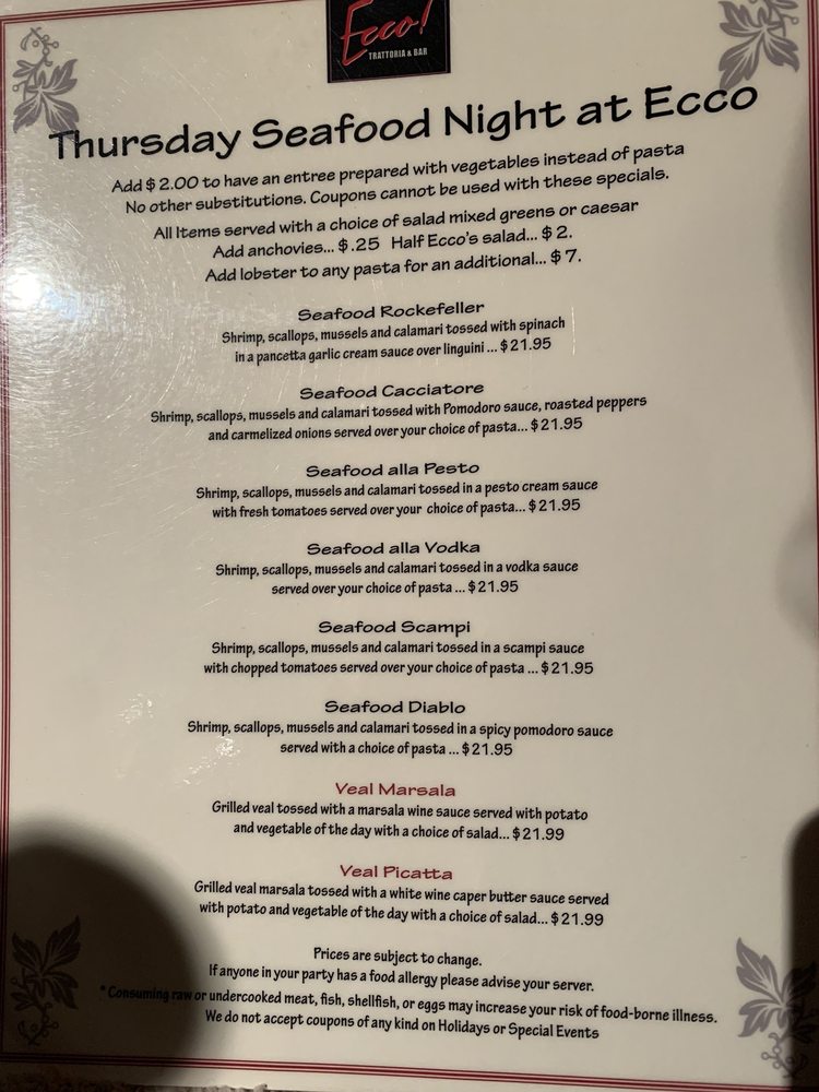 Ecco Trattoria Menu